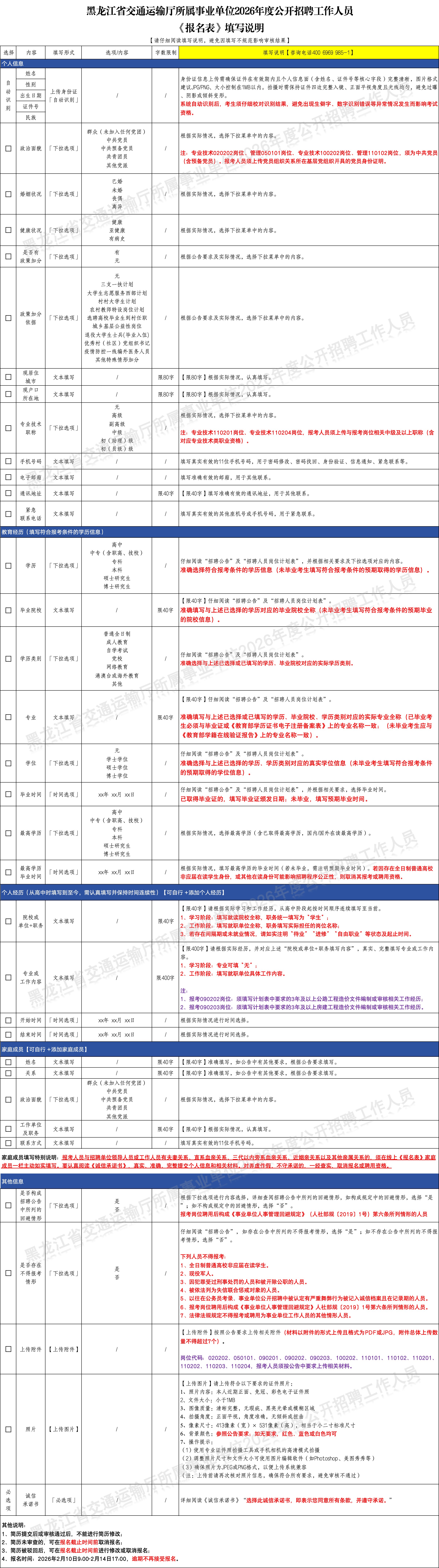 黑龙江省交通运输厅所属事业单位2026年度公开招聘工作人员《报名表》填写说明